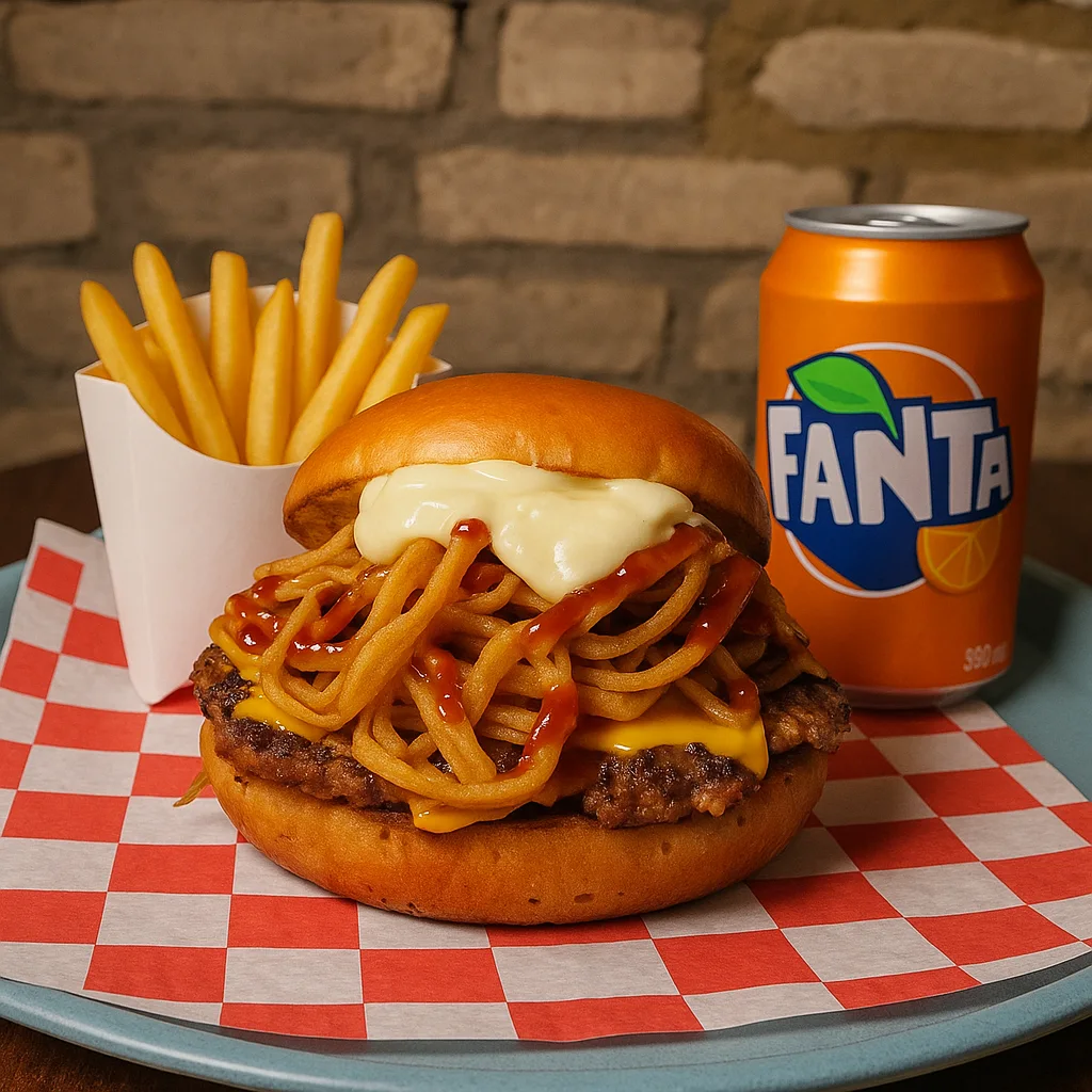 Pão da casa fofinho, burger grelhado, mussarela derretida e o famoso molho especial da casa. Acompanha + 2 Fritas + Refri.